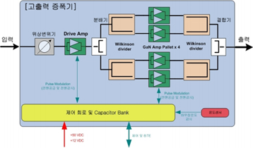 MTBF(Mean Time Between Failure), 소형화, 경령화 등 많은 장점을 가짐 - 반도체 전력증폭기는 0 dBm의 낮은 RF 펄스신호를 입력 받아 수백~수천 W의 고출력 RF 펄스신호로